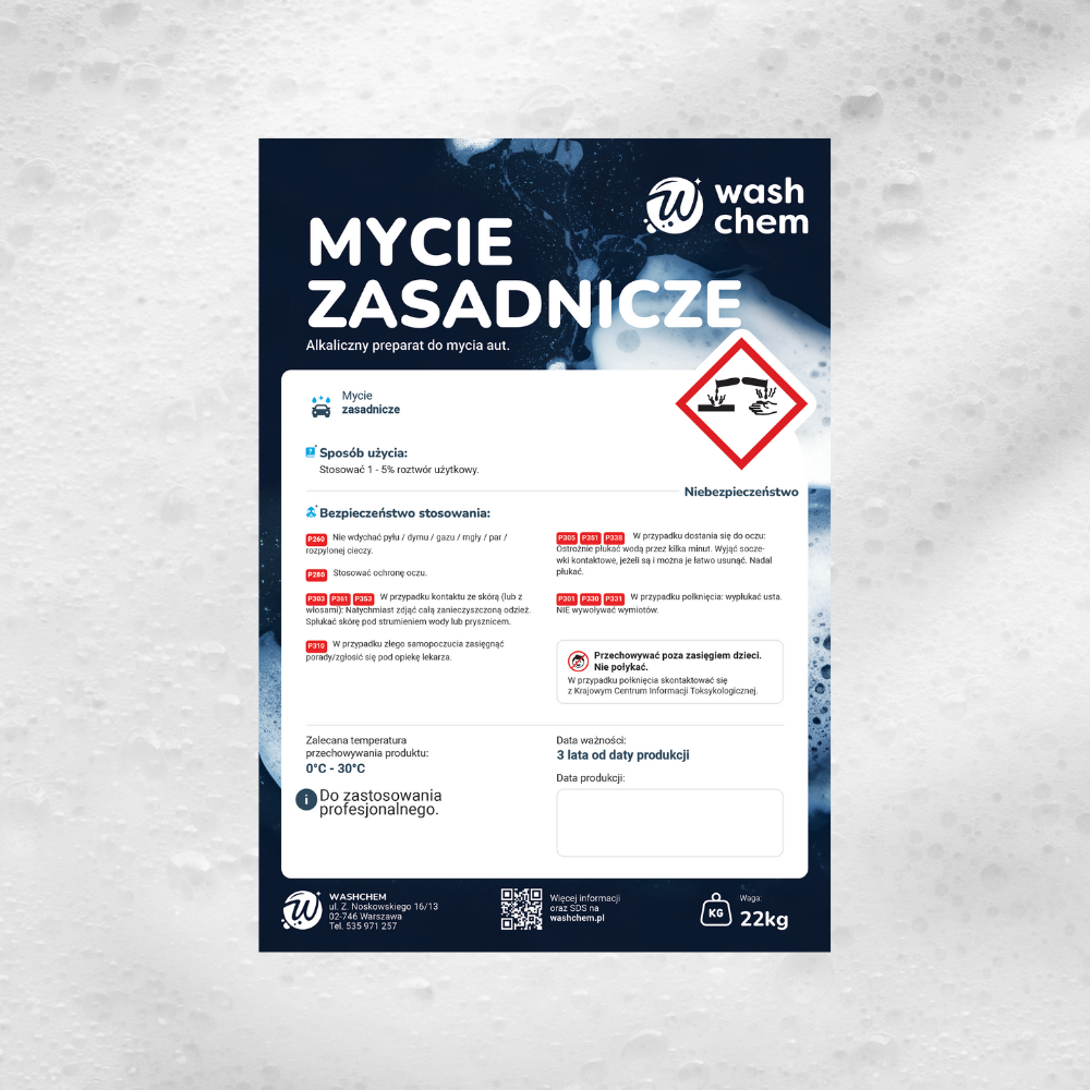 MYCIE ZASADNICZE WASHCHEM to czysta siła zasady – niskopienna, skuteczna i stabilna chemia do programu głównego.